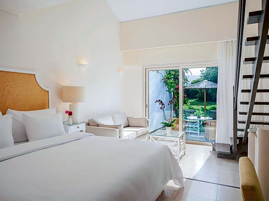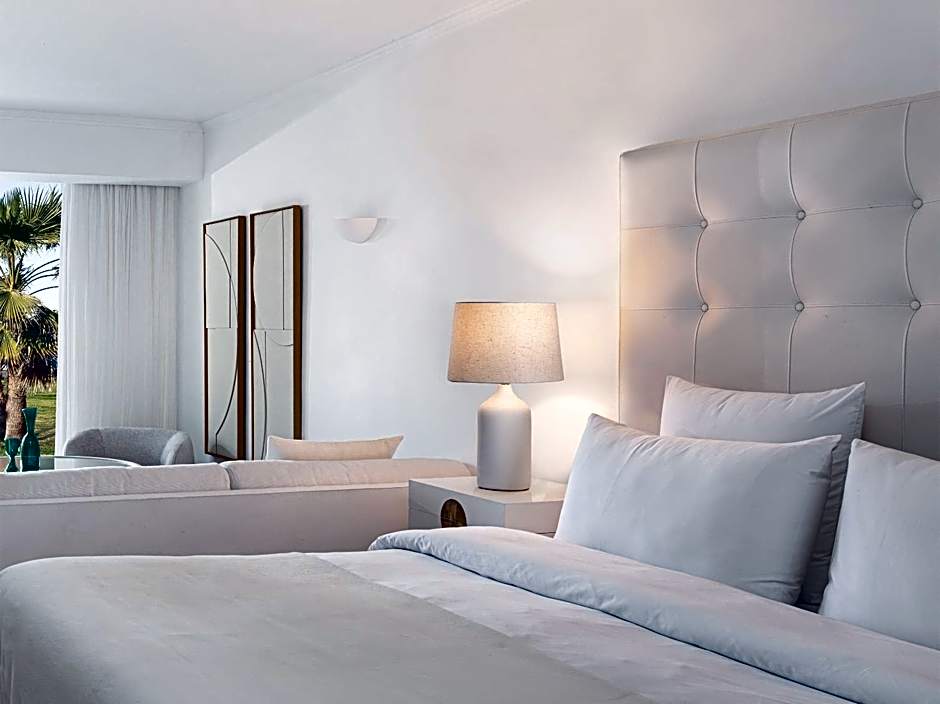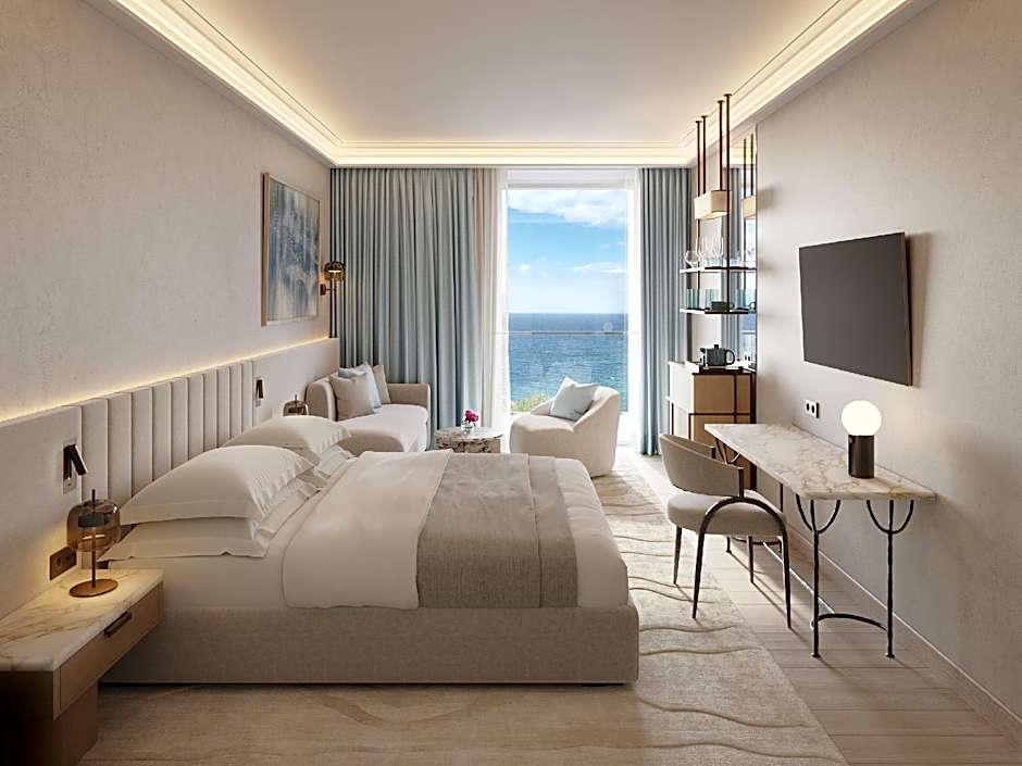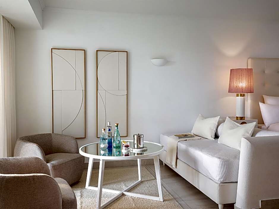 Generously appointed guest rooms with exclusively manufactured, luxurious furnishings. It features a lounge and dining area with LCD TV with satellite channels, spacious floodlit wardrobes and a luxury all marble bathroom with 2 sinks, separate WC and telephone. From the balcony, with its romantic furniture, guests will discover the breathtaking view over the sea.