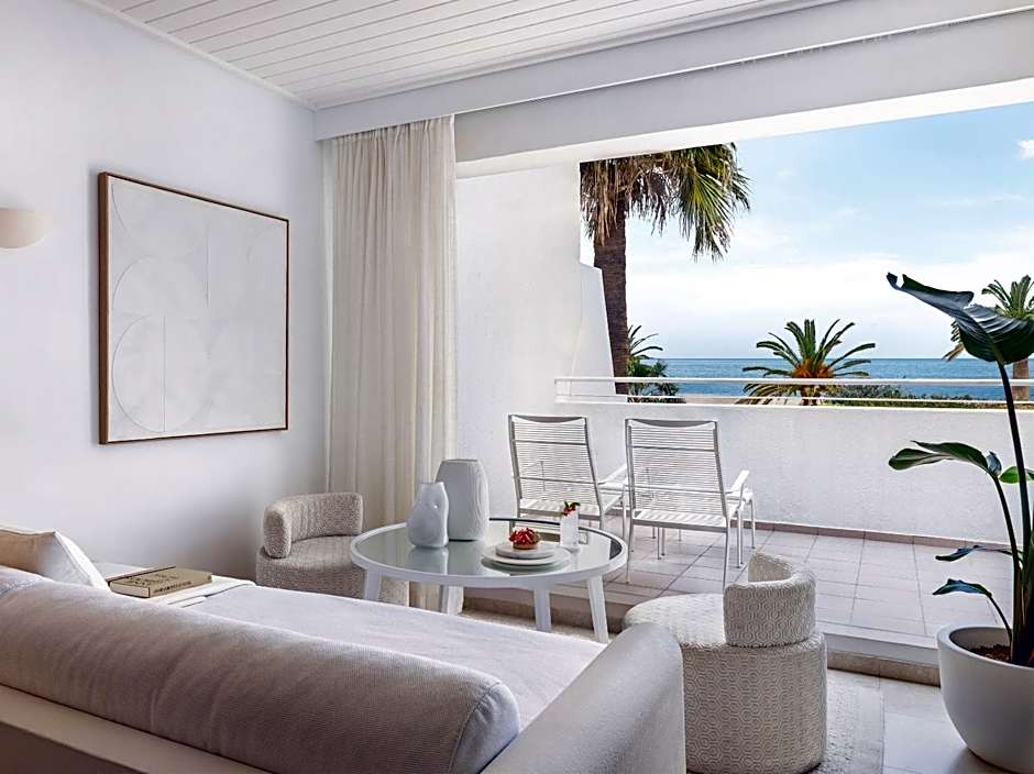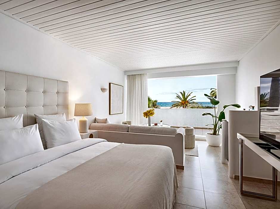 Set amid palm-trees and blossomed gardens, this beachfront suite enjoys sea views from its balcony or terrace. Modernly decorated in soft tones, it includes a living area, a 42'' LCD TV, a mini bar and a safe. The marble bathroom is stocked with branded toiletries.