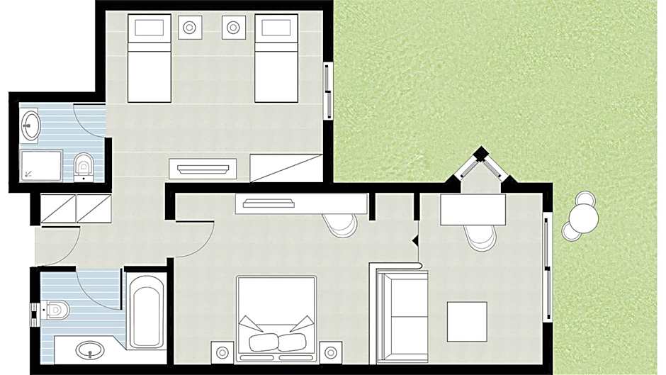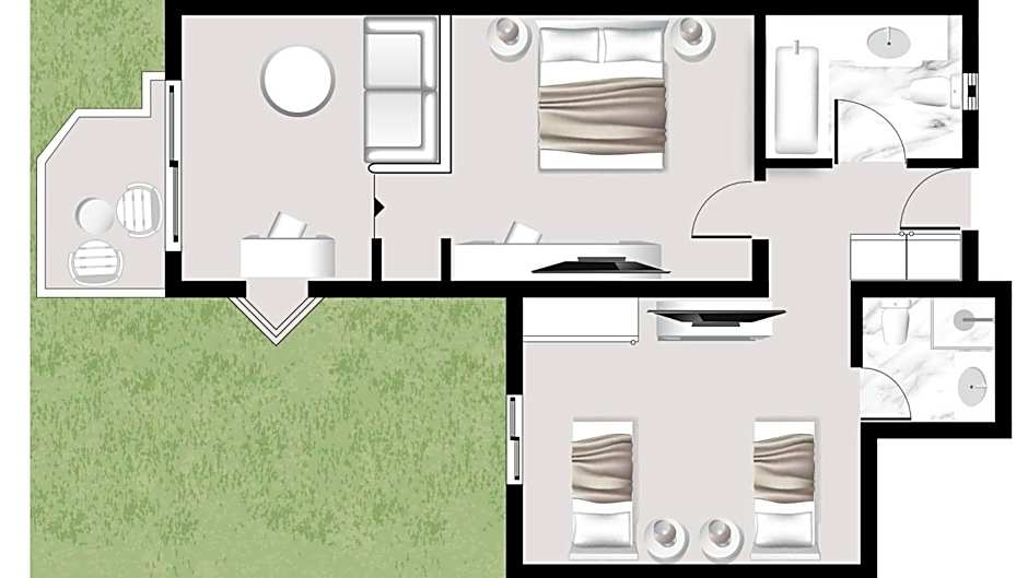 This spacious suite is consisted of of 1 living room, 1 separate bedroom and 1 bathroom with a bath and free toiletries. The air-conditioned suite offers a flat-screen TV with cable channels, a mini-bar, a tea and coffee maker, a seating area as well as garden views. The unit offers 2 beds.