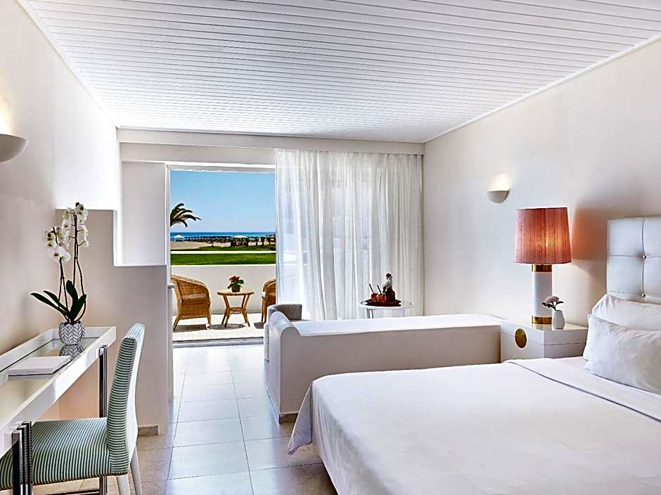 The spacious family room features air conditioning, a mini-bar, a balcony with sea views as well as a private bathroom boasting a bath.